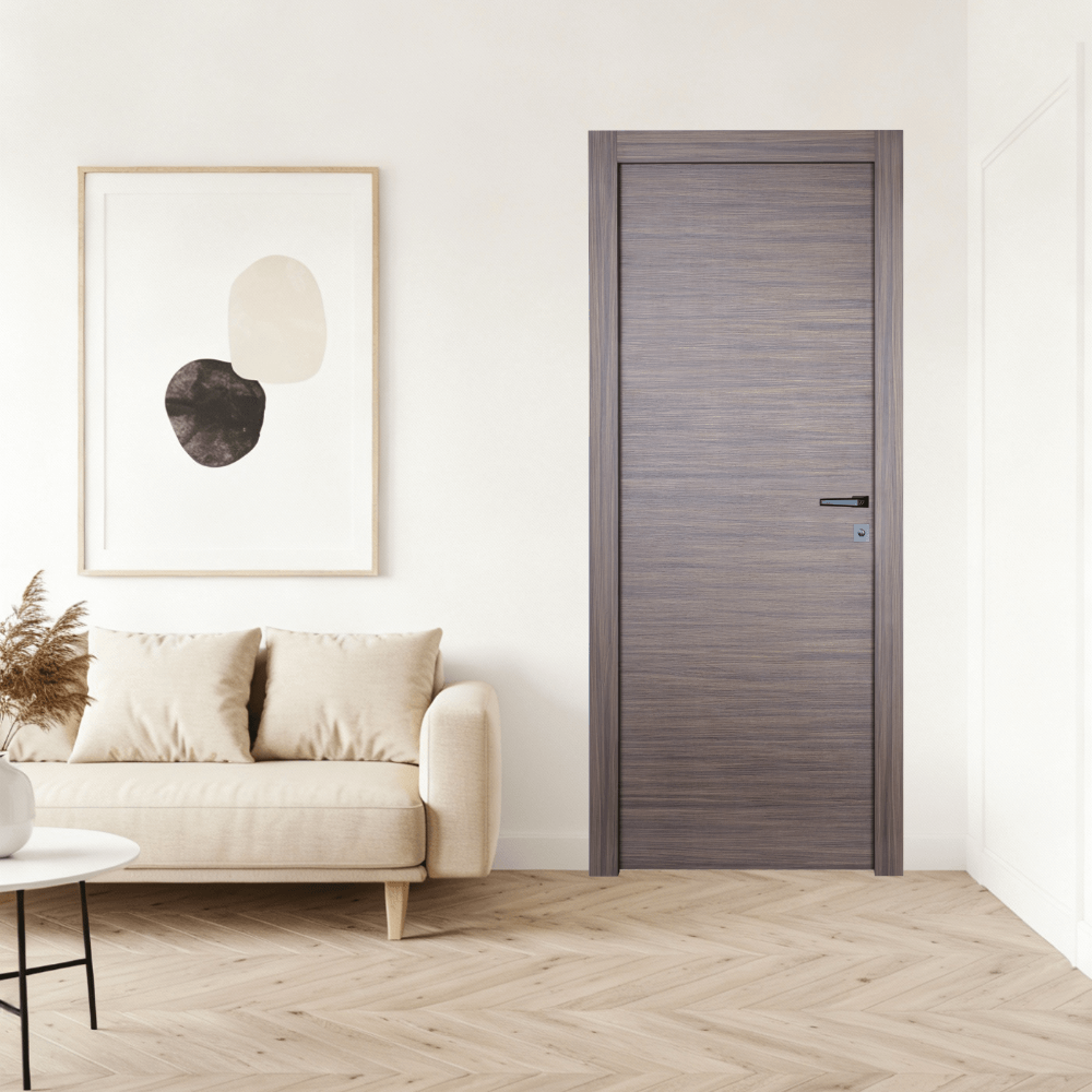Porte intérieure en bois composite hautement résistante, durable et 100% hydrofuge, conçue pour offrir une finition moderne et élégante.